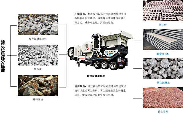 建築垃圾被集中回收後,通過移動破碎站設備與(yu) 砂石生產(chan) 線等處理後可以實現建築垃圾再利用。建築垃圾資源化需要社會(hui) 的參與(yu) 。