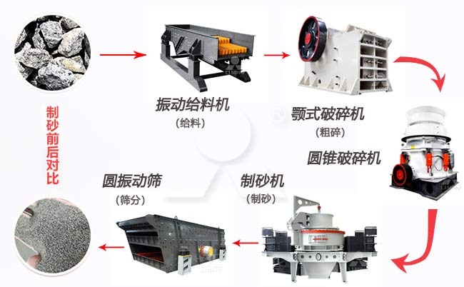 上文是對整形製砂設備的簡單介紹,如果石頭個(ge) 頭比較大還是需要配置破碎機,一整套製砂設備效率才會(hui) 更高,一整套碎石整形製砂設備有: