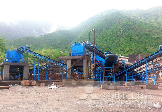 整條生產(chan) 線為(wei) 三段破碎,一段破碎采用PE900×1200顎式破碎機,排料口調到120mm得到0-150mm的料,物料進入PFW1318Ⅱ反擊式破碎機二段破碎,破碎後得到0-100mm的料,之後進入PFW1415Ⅲ反擊式破碎機進行三段破碎,得到成品料0-40mm。