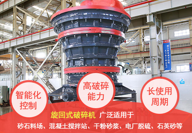 與(yu) 顎式破碎機相比,旋回破碎機的優(you) 點是∶破碎腔深度大,工作連續,因而生產(chan) 能力大,單位電耗低,且工作較平穩,可以擠滿給料,無需設置料倉(cang) 和給料機,產(chan) 品粒度均勻;