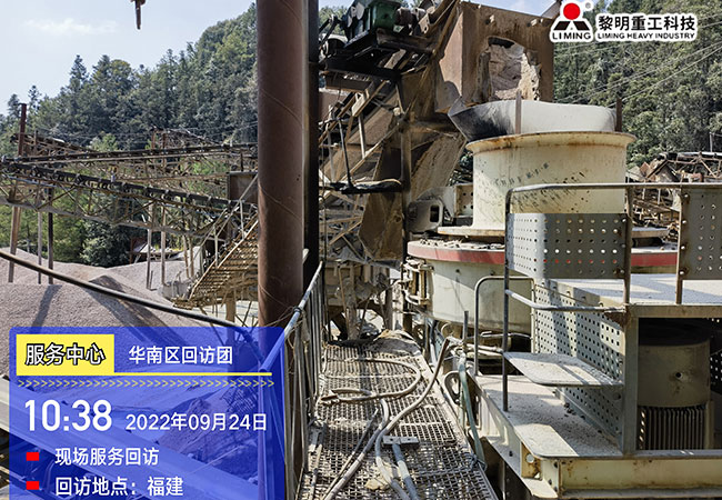生產(chan) 線簡介:該項目為(wei) 福建三明重點客戶,一期項目2017年建成,主要包含GZD1100*4200+PE750X1060+VSI5X1145+3YZS1860*2+3YZS2160+XSD3616,2020年追加HST250一台,主要成品為(wei) 0-5mm機製砂,10-20mm,20-31.5mm骨料,二期項目為(wei) C6X125+HST250+HPT300等(尚未投產(chan) ),本次回訪主要針對客戶現場一期項目進行對接。